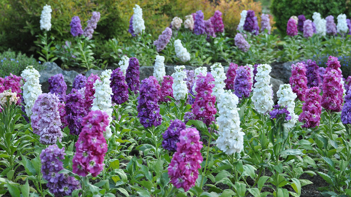 В наши дни выведено огромное количество сортов левкоя. Отличаются они цветовой гаммой, формой цветков и размерами растения. Левкои не только красиво цветут, они издают необыкновенный аромат, невозможно пройти мимо, хочется вдыхать его вновь и вновь.