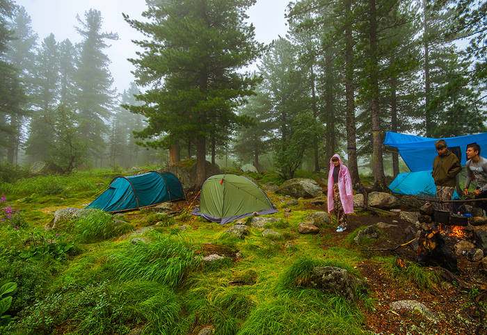Мы-то, ожидая дождя, натянули тент и приготовили накидки.