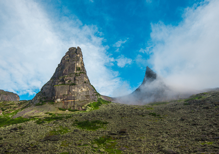 Отдохнув в нашей долине, облако поползло в соседнюю, через перевал. И тут обнажилась парадоксальная Парабола! Скала имеет столь ровную форму, что некоторые люди вообще не верят в её существование.