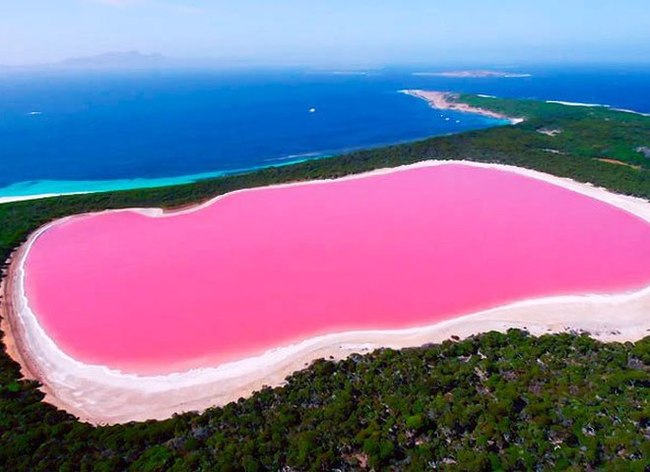 Одно из таких мест − озеро Хиллер. Это очень красивый природный феномен, который находится возле западного побережья материка Австралия на острове Миддл.