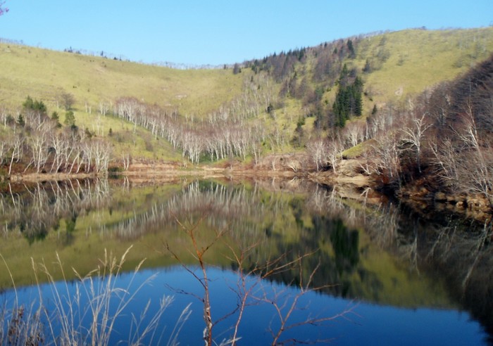 кто сможет объяснить почему на первой фотографии озеро обмелело и отошло от берегов, а на второй фотографии вокруг озера тоже появилась зелень, тот молодец!