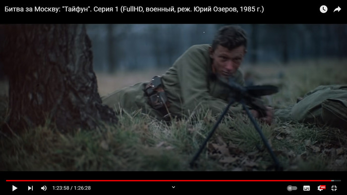 Без особых проблем курсанты добегают до ячеек фашистов. Ясно виден пулемет MG-34 "Косторез", который почему-то не стреляет и вообще на набегающего сбоку противника не реагирует. И почему пулеметчик один? Их же по штату должно быть трое. Ведь еще два "фрица" в кадре к расчету пулемета явно не относятся.