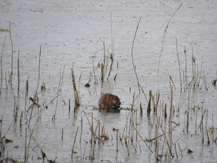Но иногда ондатра радовала - сядет на кочку посреди озера и трапезничает, позирует. В основном довольно далеко от берега - 20-30 метров.
