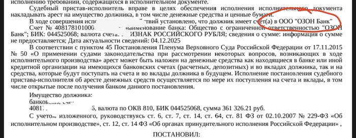 Поэтому вопрос к знатокам🥁 приходил ли вам арест на озон? Если пришло постановление. Он в любом случае происходит или просто происходит с задержкой? Письмо пришло в 10:16, сейчас 23:48, мои 14 рублей пока держатся.