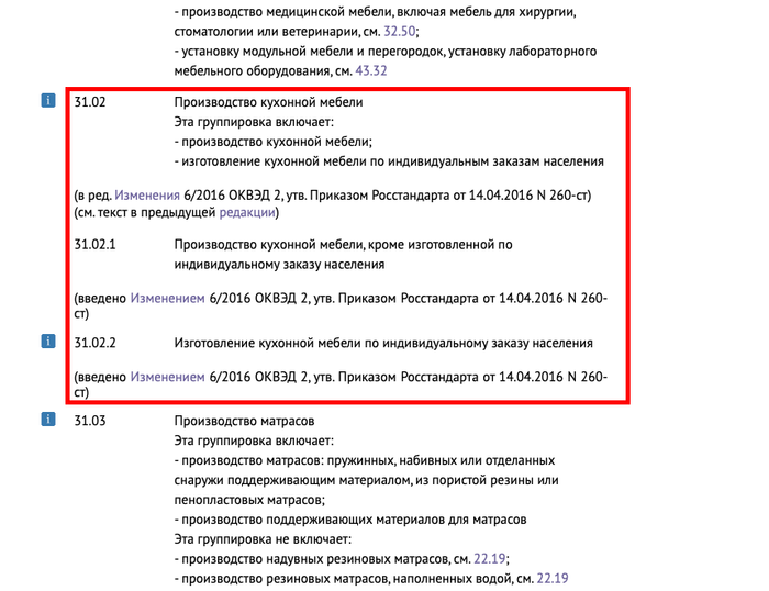 Если у вас будет производство уникальной кухонной мебели и вы будете работать только на заказ, но допускаете, что в будущем начнёте выпускать типовые решения, добавляйте коды 31.02.2 и 31.02.1 или 31.02.