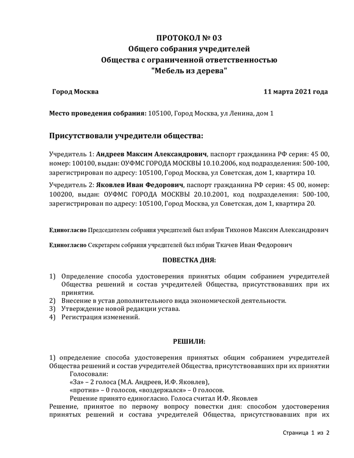 Если учредитель один, необходимо подготовить решение. Составьте протокол, если в компании несколько учредителей.