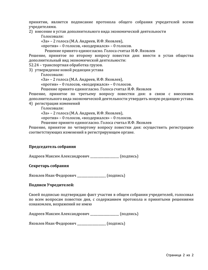 Если вы будете сообщать в налоговую об изменении видов деятельности удалённо, достаточно одного экземпляра документа. Если будете отправлять устав в бумажном виде, подготовьте два экземпляра: один — для вас, другой — для налоговой.