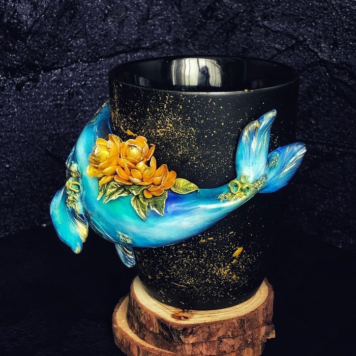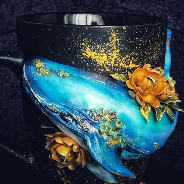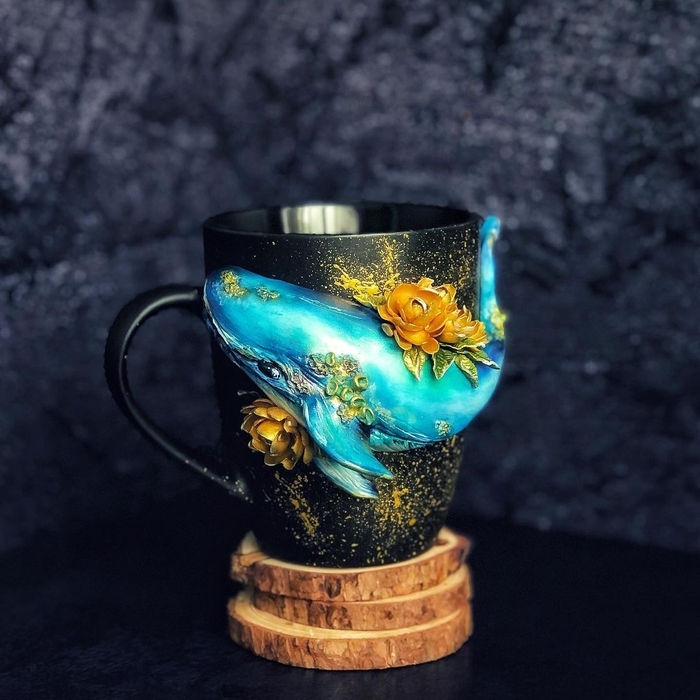 Кружка ручной работы с осенним декором ! Декор выполнен из полимерной глины .