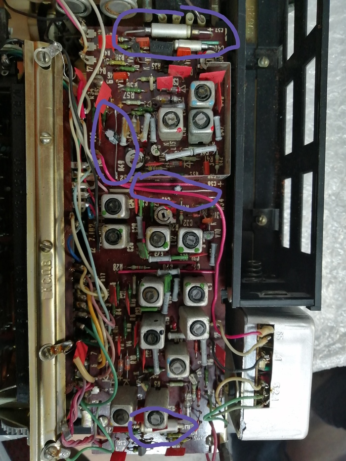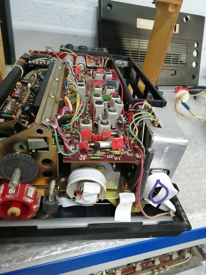 Мучались долго с узлом ПЧ. В итоге нашли конденсаторы, которые со временем потеряли герметичность и вместо десятков пик накопили десятки нан, кучу непропаев... Расстроенные контура. Пришлось даже на осциллограф городить усилитель небольшой, потому что там приём на микровольтах с платы УКВ, а на вход УМ после всех преобразований 15 мВ идёт.