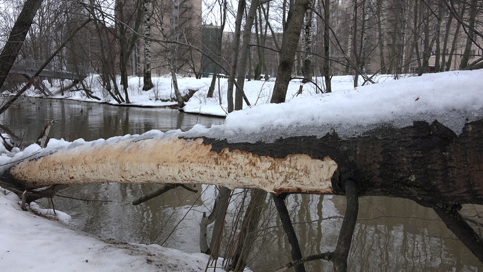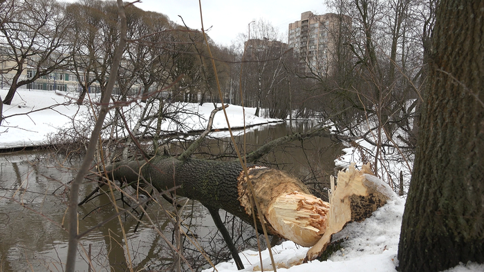 В Петербурге на реке Оккервиль живут бобры. Здесь эти грызуны обосновались уже давно. Их присутствие на реке выдают погрызы на деревьях, а также поваленные стволы. Днем заметить их практически невозможно, приду сюда ночью.