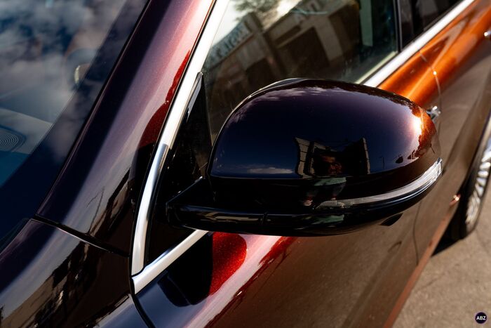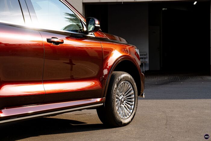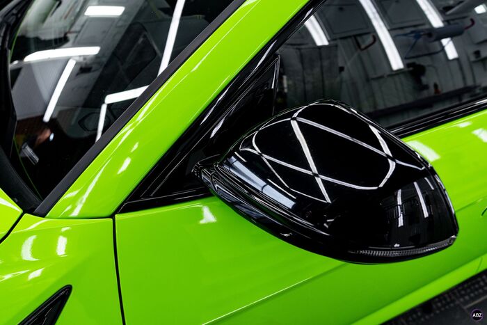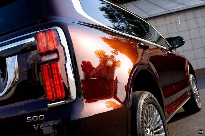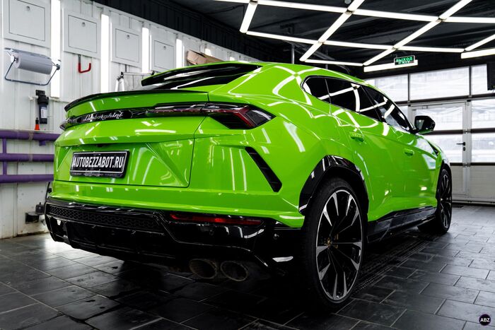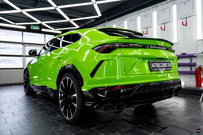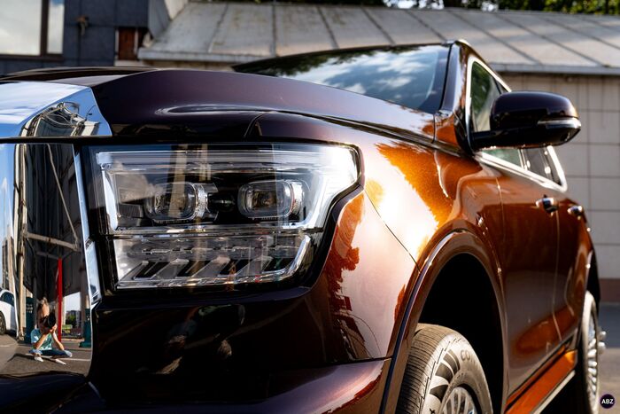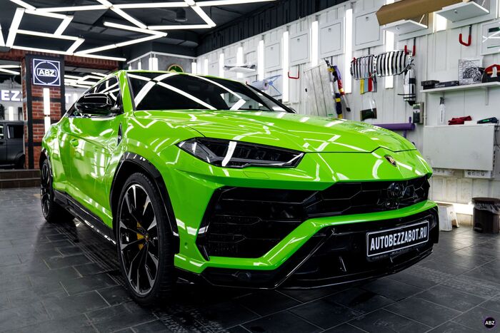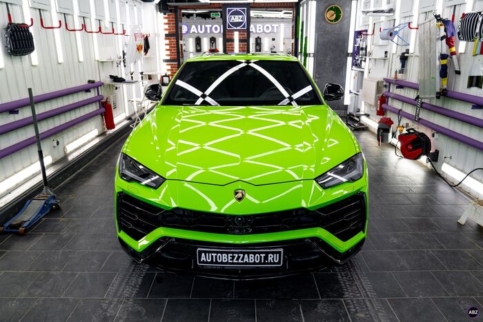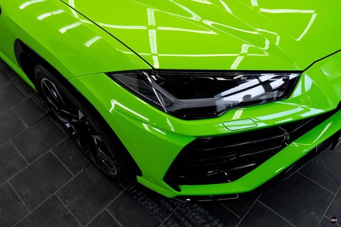 Плёнка — глянец, кузов — весь, до последнего ребра. Лобовое — в броню, фары — тоже в защиту.