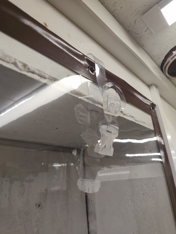 Это штора из ПВХ толщиной 0,7 мм с приваренным по периметру армированным кантом шириной 10 см.