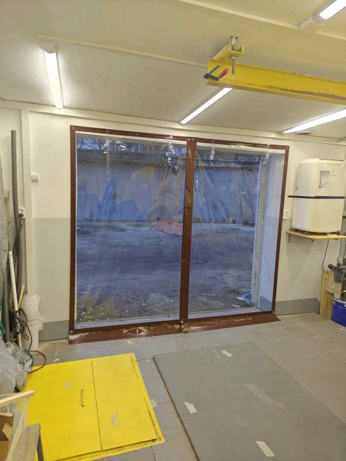 — Она 100% прозрачная! Пропускает свет, когда ворота открыты, при этом гараж изолирован от внешнего мира толстой плёнкой, летом буду наслаждаться солнечным светом и прохладой от кондиционера.