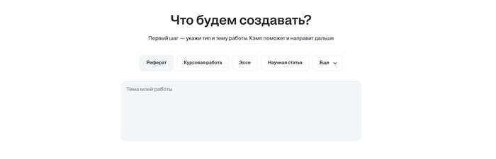 Кэмп — мощная образовательная нейросеть, объединяющая инструменты генерации, анализа и редактуры текстов. Она умеет создавать академические работы любого уровня сложности: от школьных эссе до кандидатских диссертаций. Кэмп помогает не просто написать текст, а выстроить целостную логику исследования, подобрать источники и оформить всё в соответствии с академическими стандартами.