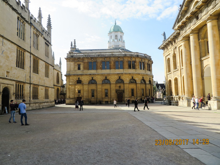 Одно из старших зданий – Театр Шелдона, его строил в 1660-х годах молодой ещё на тот момент Кристофер Рен, тот самый, который впоследствии перестраивал центр Лондона после Великого пожара 1666 года, и который построил лондонский собор Святого Павла (Сент-Пол).
