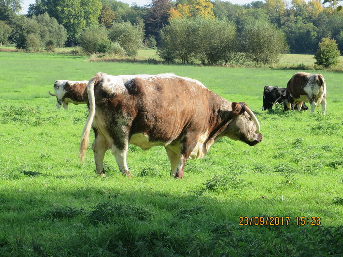 Специальные автохтонные оксфордские быки, с такими вот здоровенными по-особому загнутыми рогами.