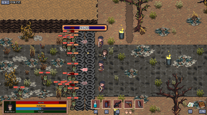 Мир полон зомби. Каждый шаг — это борьба за выживание. Опасности поджидают на каждом углу, голод и жажда станут привычным явлением. Исследуйте разнообразные локации, сражайтесь за ресурсы и выполняйте задания. Увлекательная пиксельная графика в тусклых тонах формирует непередаваемую атмосферу уныния и безнадежности. По пути не забывайте собирать записки, чтобы лучше узнать лор игры.