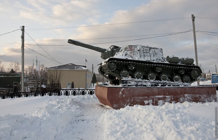 ИСУ-152 (Объект 241) — советская тяжёлая самоходно-артиллерийская установка (САУ) периода Великой Отечественной войны. В названии машины буква «И», в дополнение к стандартному советскому обозначению «СУ» — самоходная установка, означает «на базе танка ИС». САУ того же калибра под названием СУ-152 выпускалась на другой танковой базе. Индекс 152 означает калибр основного вооружения машины. Было выпущено 2825 самоходок. Одна из них занимает место на постаменте в посёлке Октябрьский, Пермский край. Фотки нашёл поиском в интернете. Постамент ремонтировали, самоходку красили, но это три снимка одной самоходки, сделанные в разное время. В детстве я много раз лазил по ней с братом, причём залезть на неё одному без риска для жизни не представлялось возможным - только вдвоем. На каникулы летом в Октябрьский я многократно приезжал поездом из Подмосковья. Координаты - 56.515117, 57.204589