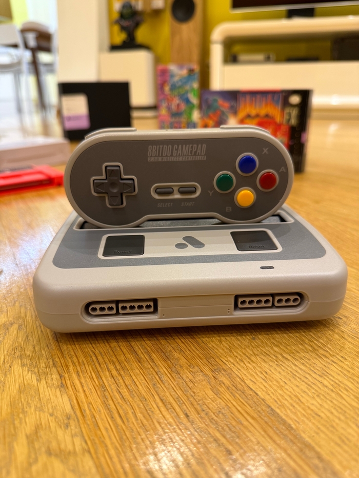 В общем, берёшь в руки геймпад 8BitDo для Super NT, запускаешь какой-нибудь Super Metroid или Batman returns или Teenage Mutant Ninja Turtles IV: Turtles in Time — и понимаешь: это самый крутой, чёткий и удобный способ играть в 16-битные Нинтендо хиты на своём, большом 75-дюймовом олед телике;) И да, это того стоило!