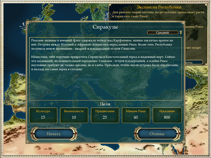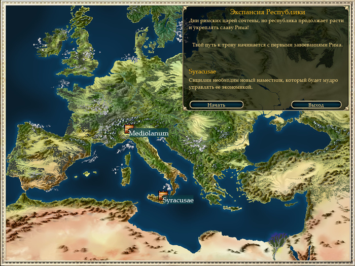 А почему нет? Акатош правит не только Скайримом, но и Древним Римом тоже! После чего есть две кампании. Первая это строительная, где нужно превратить захваченные земли Сицилии в "рай обетованный". А вторая это военная, где нужно собирать армию и планировать различные другие операции.