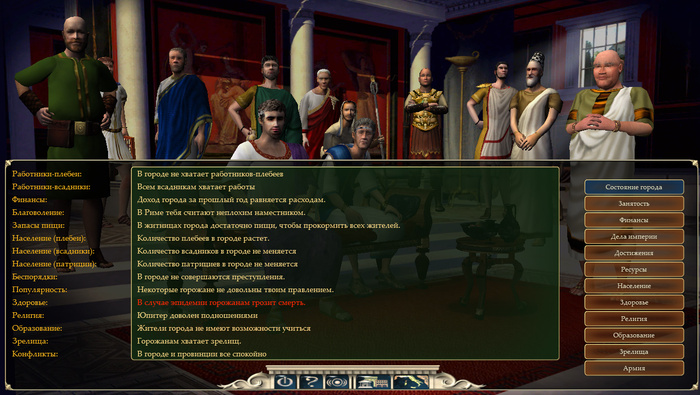 Потому важно понять, что в этой игре нельзя валять дурака. Ну конечно не жалко если погибнут граждане от эпидемии, нехватки еды, пожаров, насилия на улицах, так сказать римки новых нарожают, но всё же.