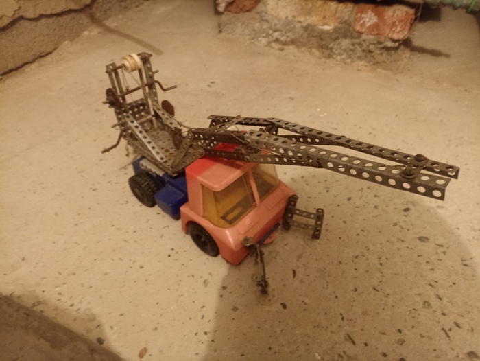 А еще был собран такой кран из старого самосвала си сломанным кузовом и металлического конструктора.