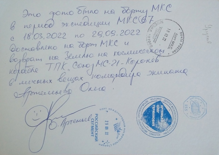 Но папа, после того как я ушел, решил сделать мне сюрприз и по дружески спросил "Слушай, а возьми с собой эту фотку на МКС?"