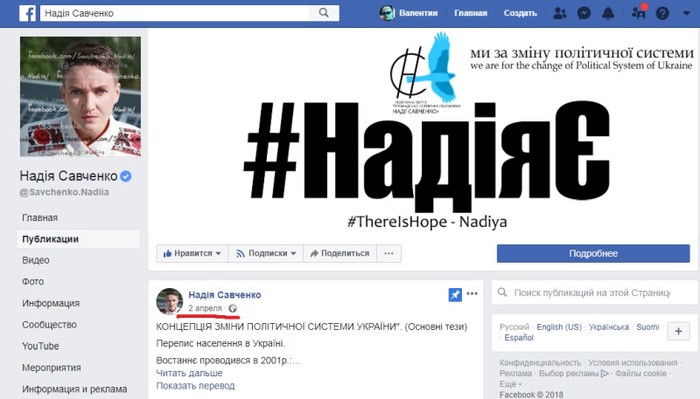Судя по всему, благодетель Савченко решил даже особо не вкладываться в раскрутку страницы несостоявшейся летчицы и президента Украины – всего 33 тысячи подписчиков, что по сравнению с количеством подписчиков Петра Порошенко или Юлии Тимошенко просто пыль.