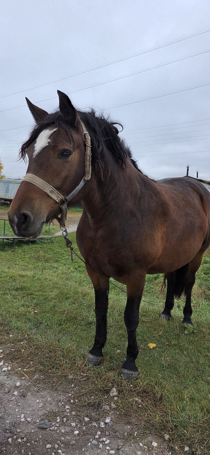 Кони здесь нетипичные для сельской местности. Очень похожи на представителей породы русский тяжеловоз. Тот, что на фото, тоже, как и Буран, очень общительный. Бегал за мной, как собачка и тоже просил, чтобы его погладили😊