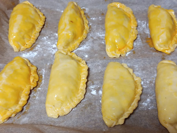 Смажьте эмпанады желтком. Уберите в холодильник на 30-60 минут.