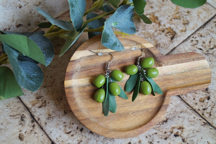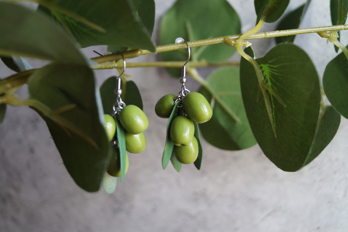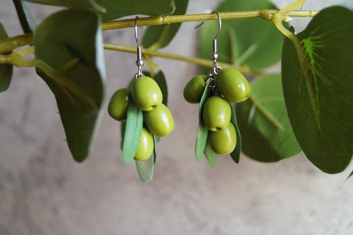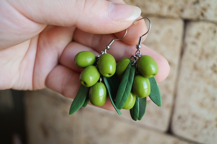 Брелок-подвеска с маслинами и оливками из полимерной глины Cernit.