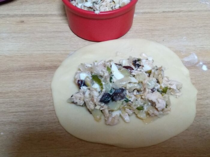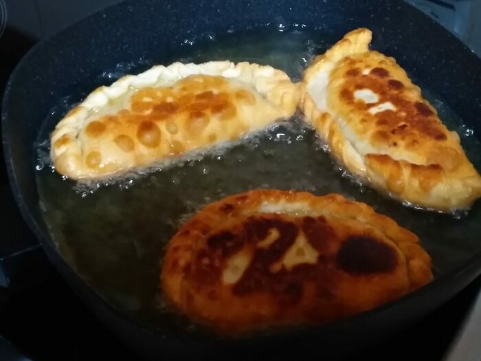 Тесто не классическое для эмпанад- меньше масла и больше сахара, за счет чего получается нежирное, но ощутимо сладкое тесто, которое не запекается, а жарится на большом количестве растительного масла. Начинка, также разнообразие вкусов- отварная курица, вареный картофель, оливки, изюм и яйца.