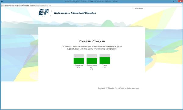 Вообще сам по себе тест был довольно интересно оформлен: были разные локации на карте Рио (если не ошибаюсь, всего 5), на которых были вопросы разного рода, но, к сожалению, скринов не сохранил...