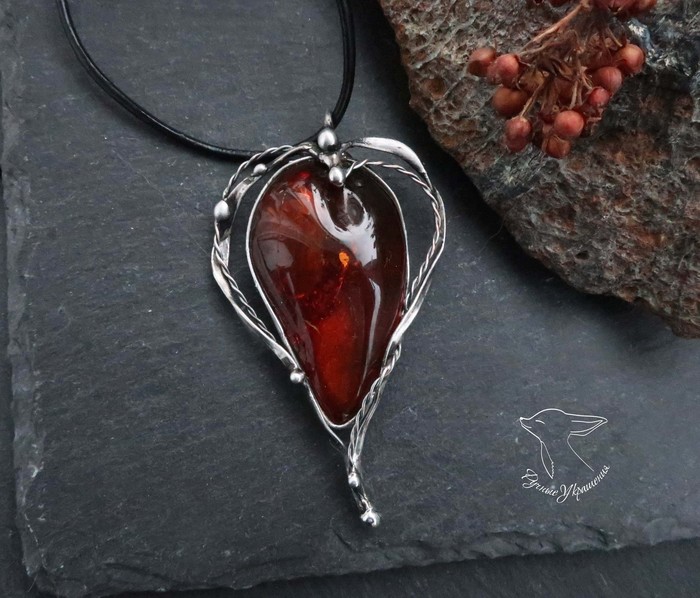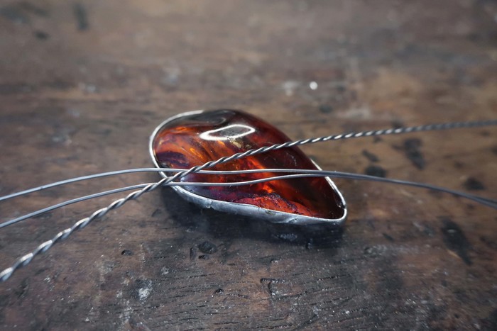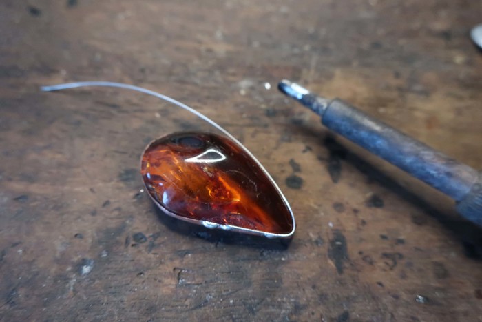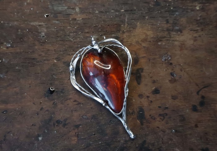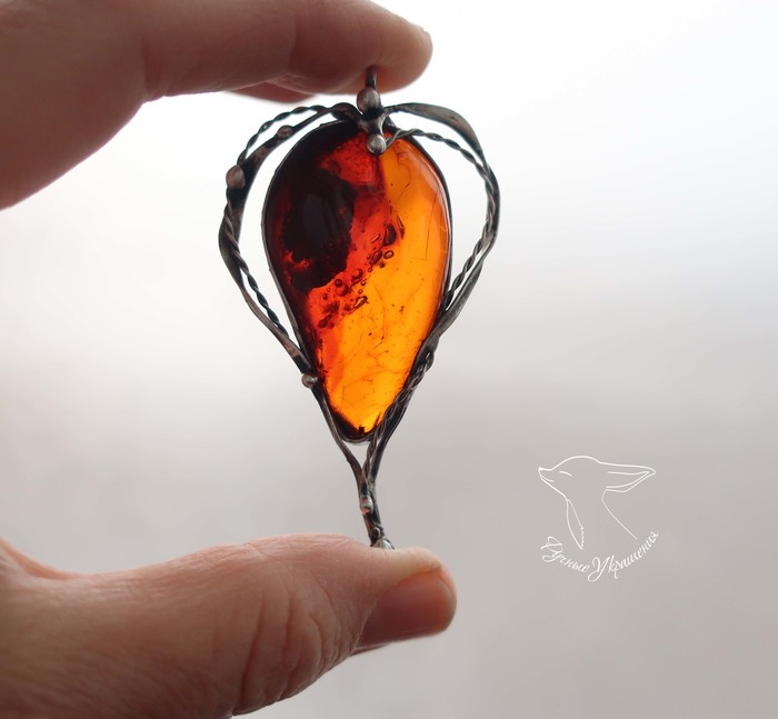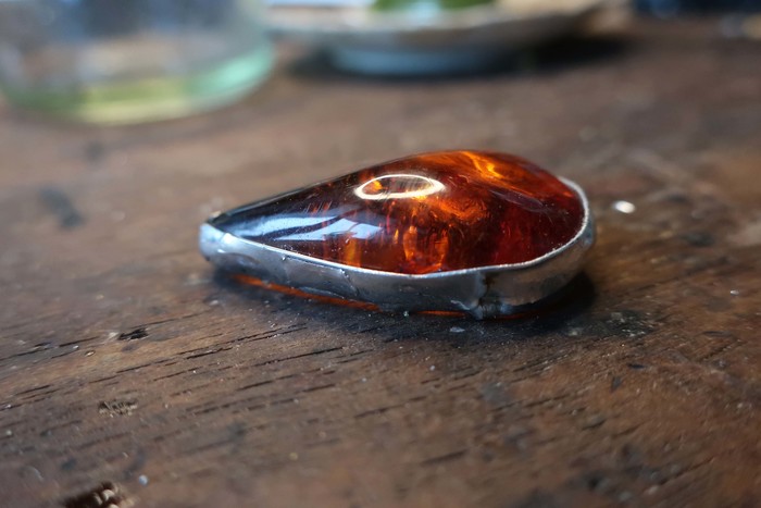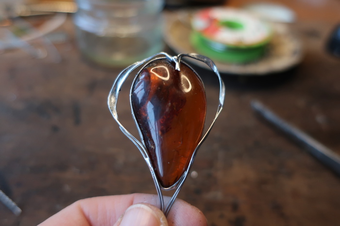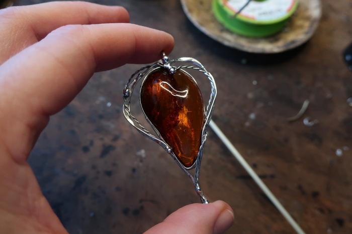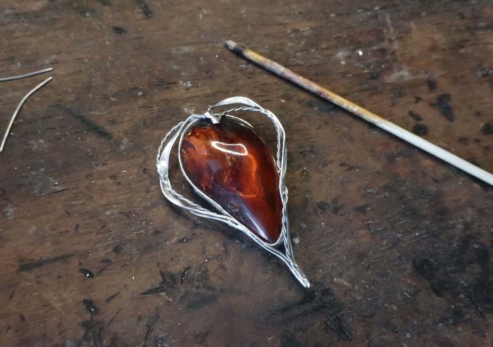 Пересмотрела сейчас фото. По ним кажется, что всё происходит быстро и легко. На самом деле, конечно, это не совсем так. К тому же с янтарем не очень просто работать – всегда есть риск, что он не выдержит высокой температуры и станет мягким, начнет плавиться. Сейчас мне удалось этого избежать, хотя всякое бывало.