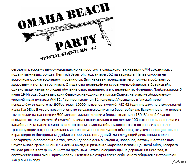 Немецкий пулемётчик Генрих Северло - Омахское чудовище