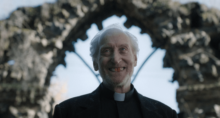 В чём же заключается этот авторский взгляд? В том, что Стивенсон совершенно игнорирует стиль и мифологию франшизы! Все формальные отсылки к «Омену» (фотокарточка Грегори Пека, грозно произнесённое имя «Дэмиен», повешение со словами «Это всё ради тебя») выглядят чуждыми, будто отголоски из предыдущих, продюсерских версий истории. Доходит до абсурда. В приквеле вроде как возвращается безумный священник Бреннан, один из центральных персонажей оригинала, и сыгравший его Ральф Айнесон действительно внешне похож на Патрика Тротона из фильма 1976 года. Вот только ни характер, ни фактическая информация о героях вообще не стыкуются друг с другом.