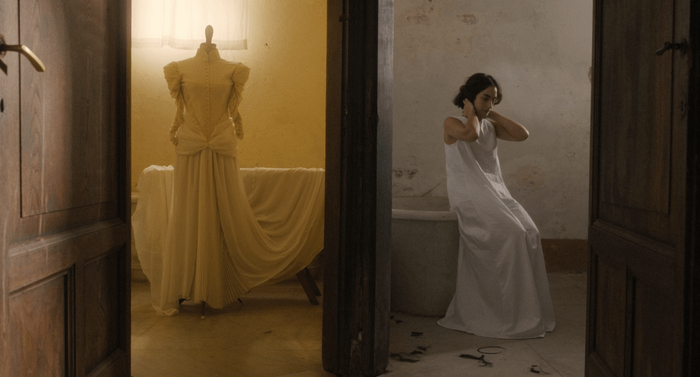 И это не просто позёрство. Все стилевые решения Стивенсон подчинены двум центральным образам. Первый — это человеческое тело: живое, уязвимое, интригующее, способное выражать целый спектр чувств и даже даровать жизнь. Второй — власть институтов, которые эти тела обволакивают, ограничивают и контролируют. Контроль принимает разные формы. Например, тугие одеяния, которые стягивают голову героини при посвящении в монахини. Или обшарпанные голые стены «комнаты для плохих девочек», где из всей обстановки — только радиоприёмник, каждый вечер кряхтящий голосом аббатисы: «Silencio!»
