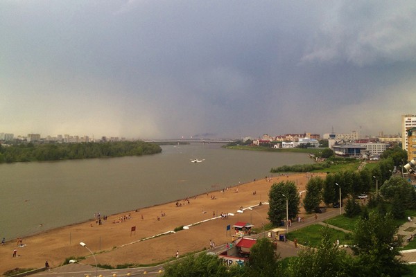 Сегодня, 12 апреля, на Куйбышевском пляже Омска появился первый загорающий. К 16:30 в Омске было +16 градусов. Несмотря на ветреную погоду, он снял верхнюю одежду, расстелил полотенце и лёг на песок неподалёку от Центрального ЗАГСа. Поблизости никого не было — никто из омичей больше не отважился разделить его занятие и открыть пляжный сезон так рано.