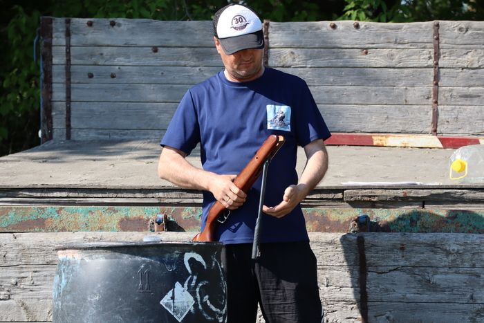 Помимо благоустройства театра, мы делаем реквизит. Вот ружье, которое сделали к спектаклю "Зима" по пьесе Ивана Вырыпаева "Валентинов день".