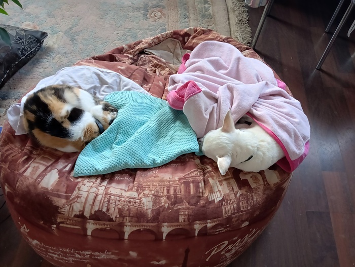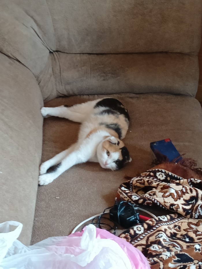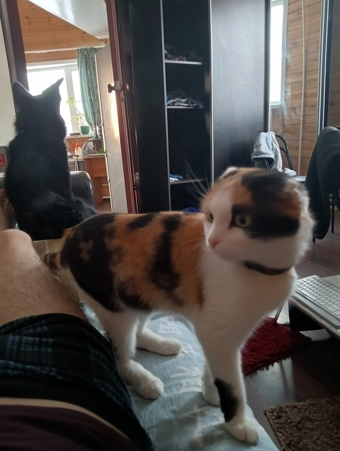 P.S. Кошку зовут Бомжиха, так как сама пришла к нам зимой в -40 и сама решила тут жить, имя Бомжиха потому что выглядела она на тот момент как настоящая бомжара, очень ласковая девочка, не любит когда ее берут на руки и тискают, но любит когда эмм берут ее подмышку и таскают как мешок с картошкой, в этот момент кошка на 7 небе от счастья и мурчит как трактор, просто ее в одну руку берёшь и занимаешься своими делами... Да, она странная.