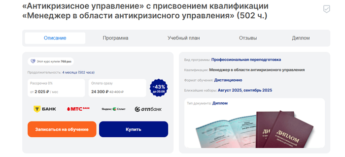 Если вы ищете альтернативные варианты, предлагаю еще 17 специализированных программ. Дистанционное обучение антикризисному управлению позволяет осваивать материал в удобном темпе без отрыва от работы. Эти курсы подойдут тем, кто хочет углубить знания или рассмотреть разные подходы к решению сложных ситуаций. В подборке представлены программы разной продолжительности и уровня сложности. Вы сможете выбрать оптимальный вариант, соответствующий вашим целям и профессиональным задачам.