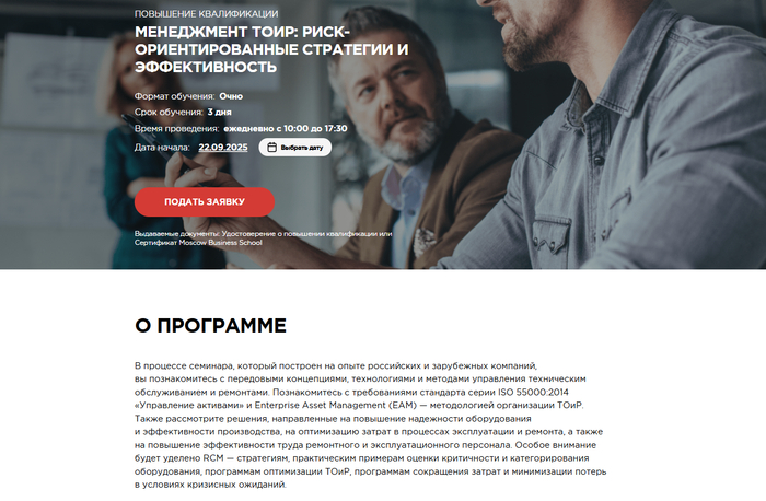 Стратегическое управление компанией с построением надежной системы риск-менеджмента от MBS. Участие в мероприятии научит результативно формировать концепцию прогресса вашей фирмы, одновременно выстраивая устойчивый механизм контроля угрозами, позволит отслеживать и своевременно вносить коррективы.
