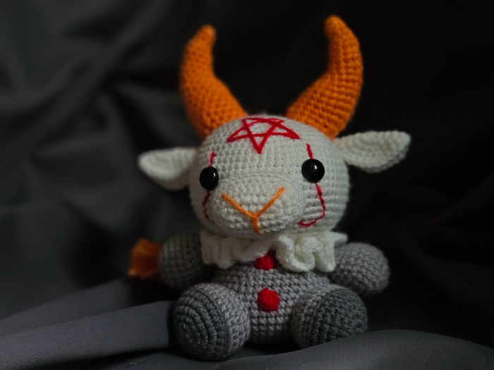 [моё] Вязание крючком Вязание Амигуруми Творчество Своими руками Рукоделие Рукоделие без процесса Ручная работа Игрушки Вязаные игрушки Авторская игрушка Хэллоуин Мягкая игрушка Бафомет Пеннивайз Стивен Кинг Оно Оно 2 Длиннопост