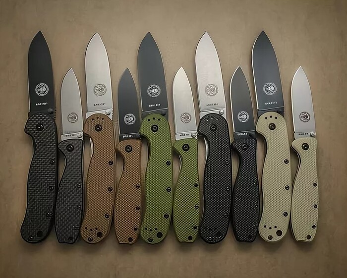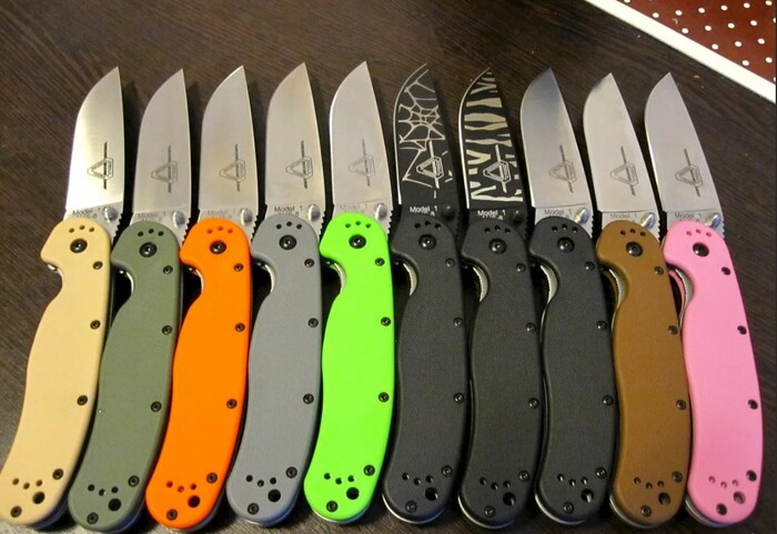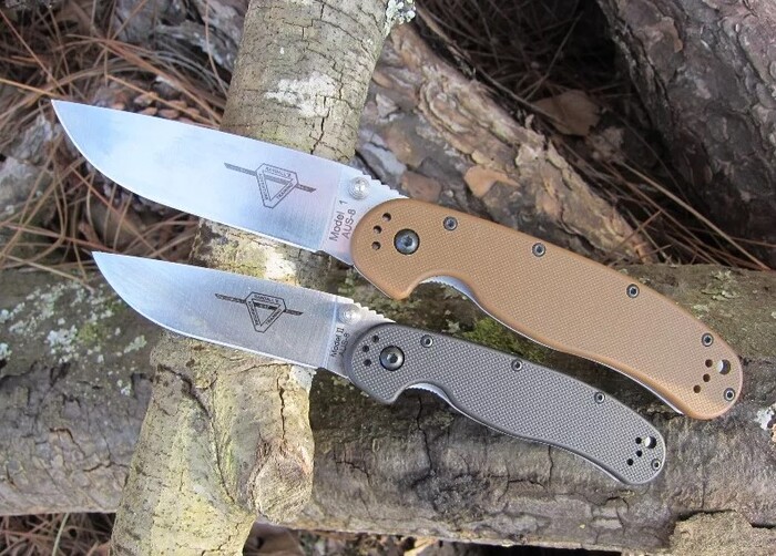 Едва появившись на свет, нож Ontario RAT-1 занял прочное место в сердцах и на карманах пользователей. Было отчего. Нож выпускался из стали Aus-8 – коррозионностойкой и достаточно резучей. Замок – лайнер-лок, толстый и надёжный. Лайнеры рукоятки выполнялись из нержавеющей стали 420, а накладки на рукоять – из пластика FRN. Чтобы удовлетворить самого требовательного ножемана, клинок ножа выходил с чёрным покрытием и без такового, а рукоятка красовалась множеством вариантов расцветки – чёрного, оливкового, песочного, фиолетового и даже розового – для особо брутальных любителей.