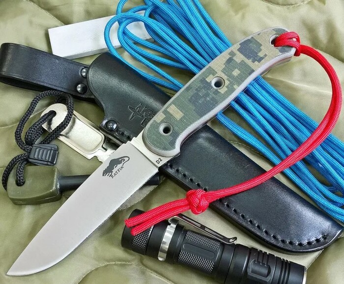 Немного ТТХ. Клинок у «Крысы» - длиной 8.89см, обух – 3мм, твёрдость – 56-58 ед. по шкале Роквелла. Такой клинок неплохо держит заточку и при этом легко правится даже в полевых условиях.