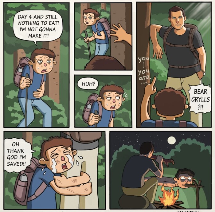 Благодаря телевизору и интернету, мы знаем, что один из самых крутых выживальщиков – Беар Гриллз. Его шоу с приготовлением еды из подножных предметов и постройки домов из коры и палок с грохотом прокатились по сердцам неподготовленных зрителей, породив между делом волну мемов.