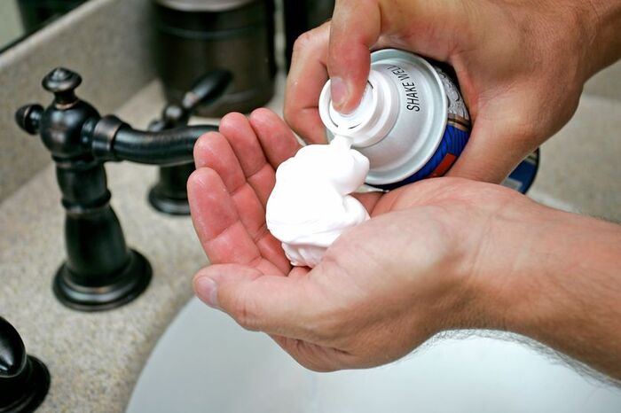 Это гораздо удобнее, чем мазюкать по лицу мокрой кисточкой. Да и качество у такой пены самое лучшее. Эта пена имеет в составе мало влаги, что предотвращает стекание пены с лица - очень удобно. Бритва замечательно скользит. Так же данная пена очень экономна. Многие используют её неправильно и смывают пену в раковину. Это глупое расточительство. Достоинство этой пены в том, что она способна долго сохранять свою пышную форму и можно стряхивать пену с бритвы в специальную баночку, а затем плотно ее закрывать. Во время следующего бритья можно использовать пену из этой баночки. Данный цикл можно повторять многократно, пока количество сбритых волос в пенен не станет через чур большим и пена не потеряет свои свойства. Только после этого баночку можно сполоснуть и выдавливать из баллона новую порцию пены. Но всё-таки и у данной пены есть недостатки. Первый недостаток - это то, что она стоит денег и не все готовы тратится на такую ерунду. Второй недостаток - добавление в состав специальных компонентов, которые ускоряют рост бороды, чтобы люди были вынуждены чаще бриться и покупали пену в больших объемах. Наверняка у многих такое бывало, что побрился, а через день-два щетина начинает колоться - вот это как раз из-за компонентов ускоряющих рост волос. Благо это давно не является секретом и люди осведомлены о таких компонентах в составе пены. По этой причине многие и переходят или на бритьё хозяйственным мылом, или вообще не используют ничего, кроме водопроводной воды.