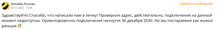 Билайну лень менять оборудование - обещают подключение через 5 (!!!) лет