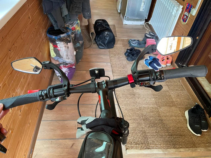 Постепенно я закупал недостающие аксессуары для велосипеда: противоскользящие силиконовые резинки на тормоза, левое и правое зеркала, звонок на руль, новые перчатки, сумка на раму, велоочки, джерси и шорты.