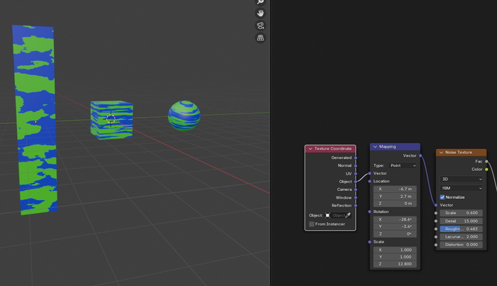 Если нужна нам возможность редактировать текстуру: то есть нода Mapping. Она и предыдущая легко создаются при комбинации Ctrl+T (при выделенной ноде, скажем шума) при включенном аддоне Нод Вранглер.